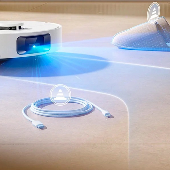Комплектация: Робот-пылесос, зарядная станция, бак для воды, сменная тряпка (1шт), боковая щетка, кабель питания.
